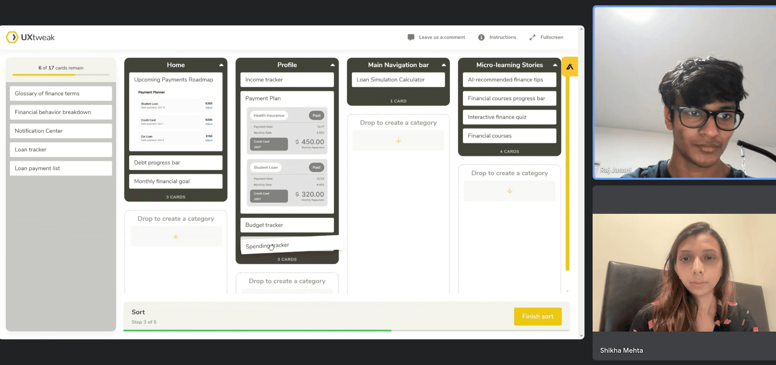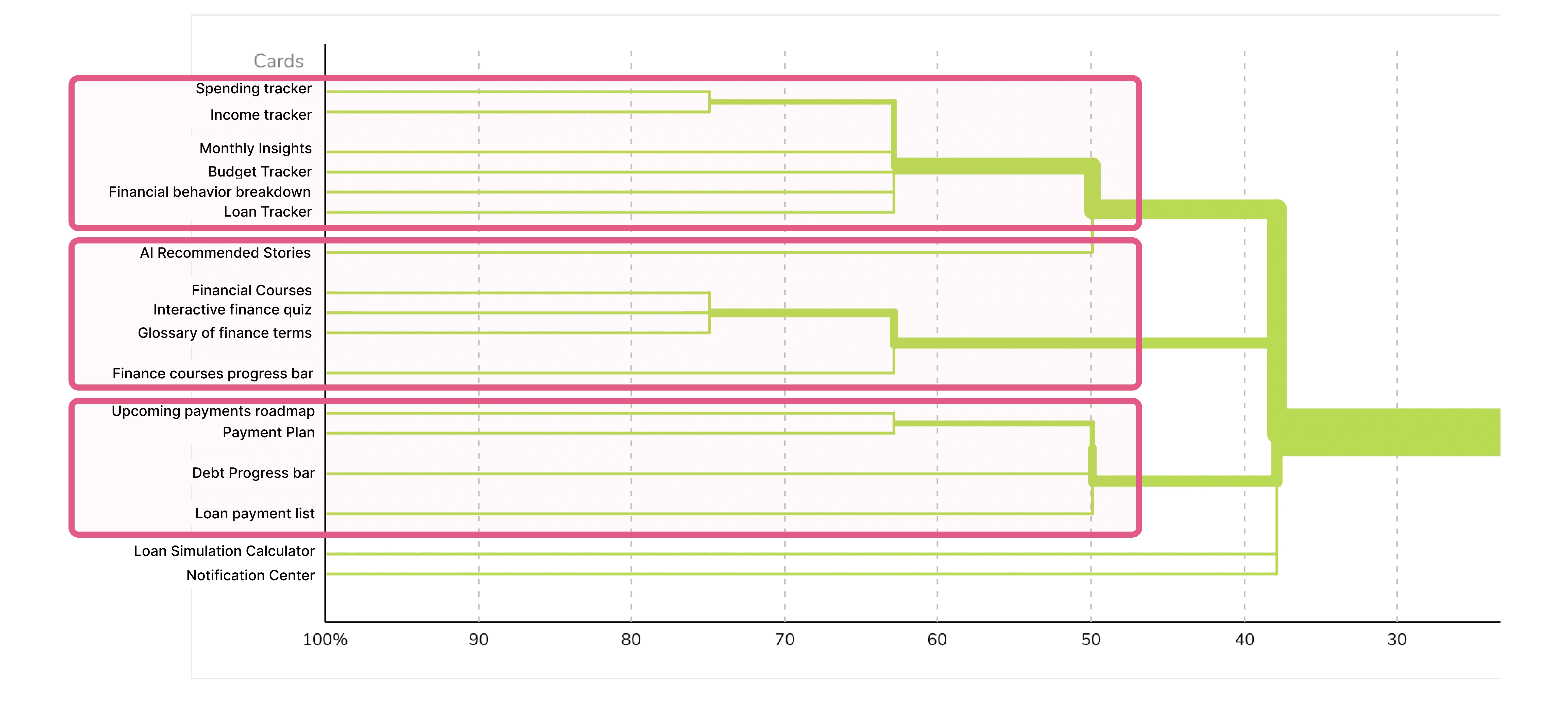 To optimize the app's information flow and ensure early engagement, I conducted card sorting sessions to understand how users mentally organize financial tools and insights.