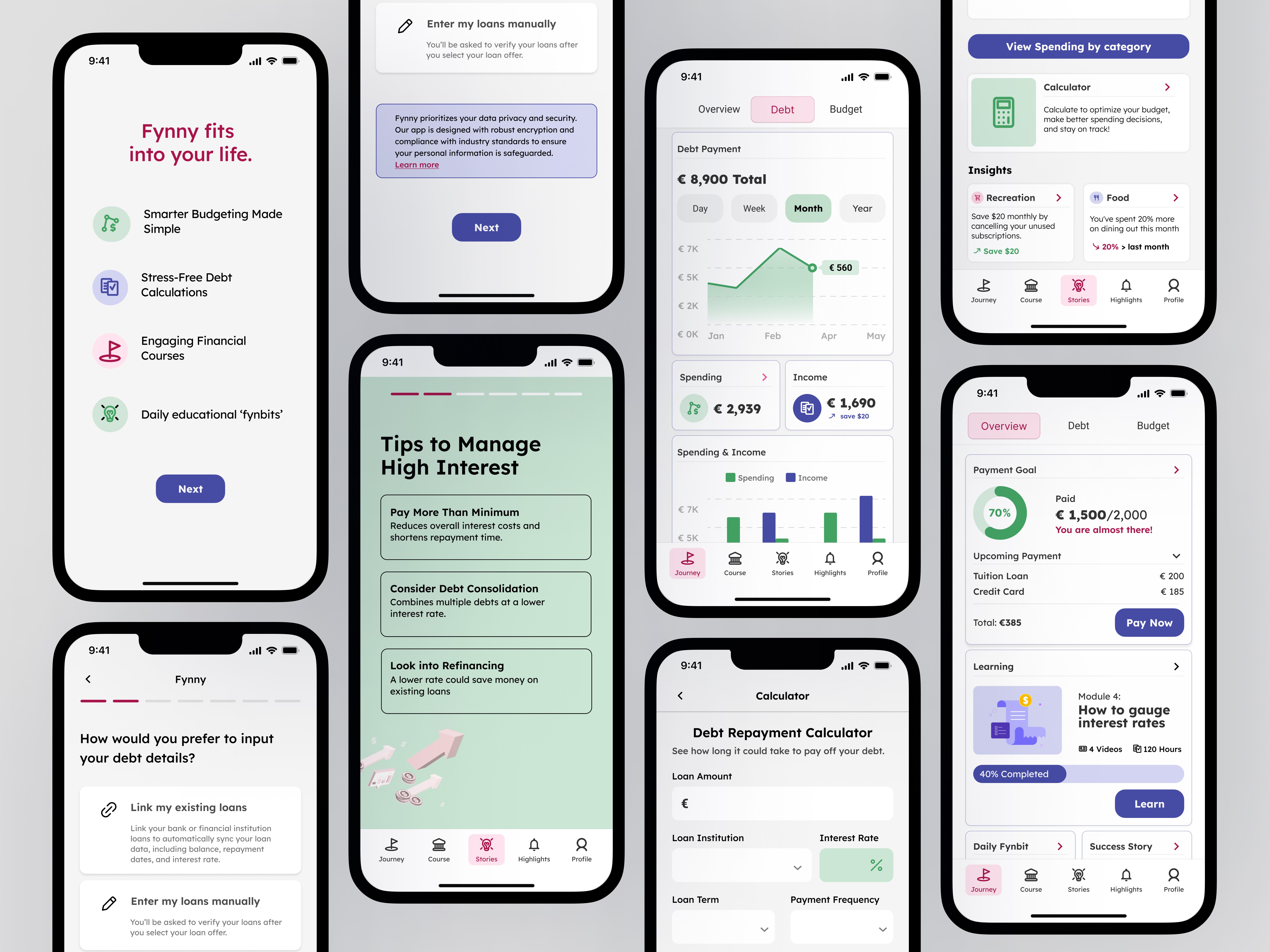 Research revealed 8 distinct financial personas among Dutch youth. We used these insights to design features and UI tailored to diverse behaviors—understanding that a Planner interacts with the app very differently than a Spender. This behavioral lens shaped our design decisions to ensure Fynny supports a wide range of financial mindsets and user needs.