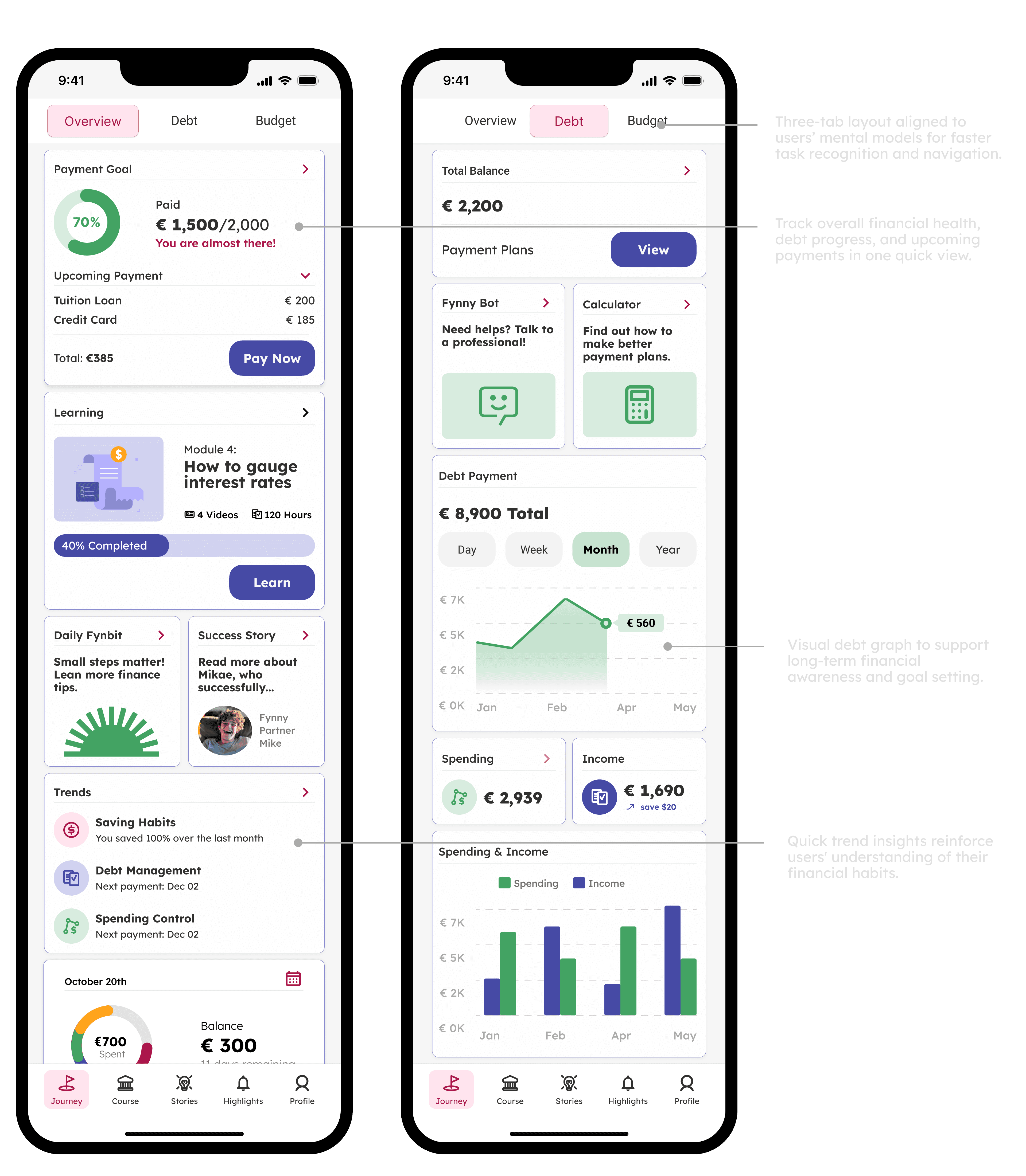 I balanced concerns about overwhelming users with the need for realistic financial visibility. Two prototypes were tested to find the right approach.